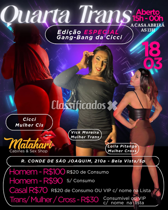 MULHER / TRANS / CROSS - VIP COM O NOME NA LISTA