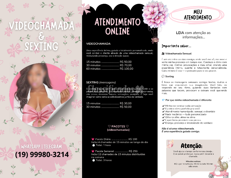 Tenho um cantinho especial onde conto detalhes do meu dia a dia, minhas travessuras, minhas vontades e o que realmente acontece por trás das minhas massagens…